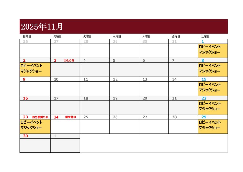 お待たせしてしまい申し訳ございません。11月のカレンダーです。