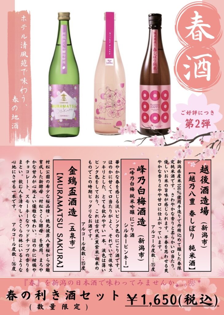 さて、以前紹介した春限定利き酒セットは大変好評につき完売を致しました。ありがとうございました。