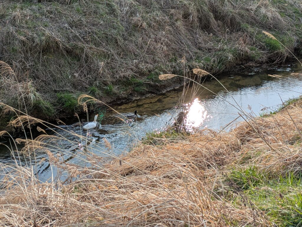 また、気温も日中は温かく清風苑の周りでも桜が少しづつ開花を始めたり、隣を流れる川には鯉やカモ、アヒルがいました。