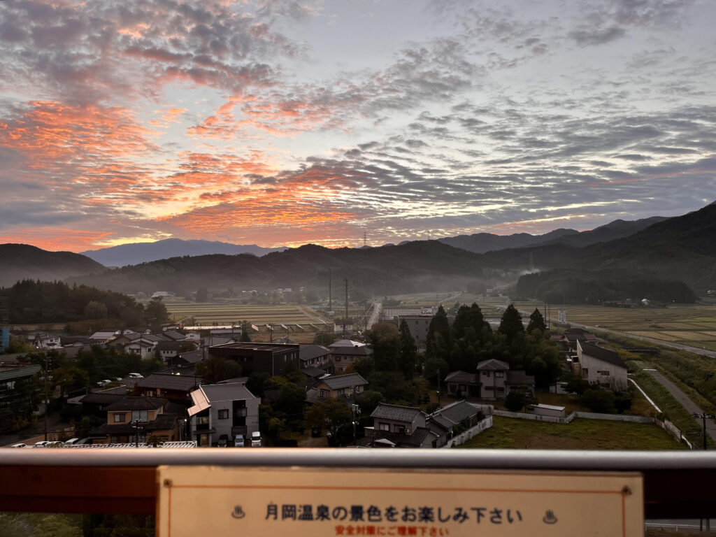 現在(10月15日お昼)は少し曇り空の月岡温泉です。