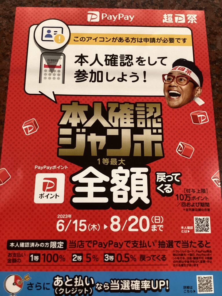 皆様にお得な情報です!本日よりPayPayをご利用すると、まさかのお支払い金額が全額戻ってくるかもしれない、、、そんな夢のキャンペーンが始まります!
