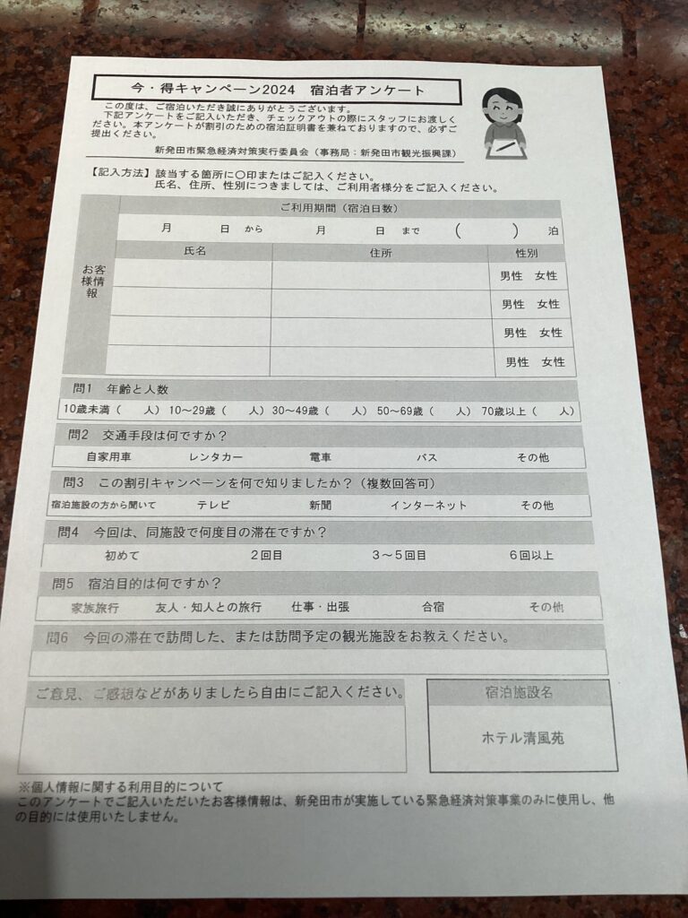 また、割引には宿泊時にアンケートを記入するだけでOK!